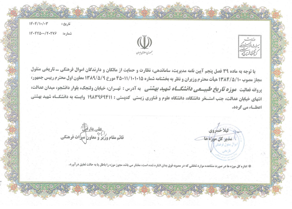 اعطاء پروانه احداث موزه تاریخ طبیعی دانشگاه شهید بهشتی