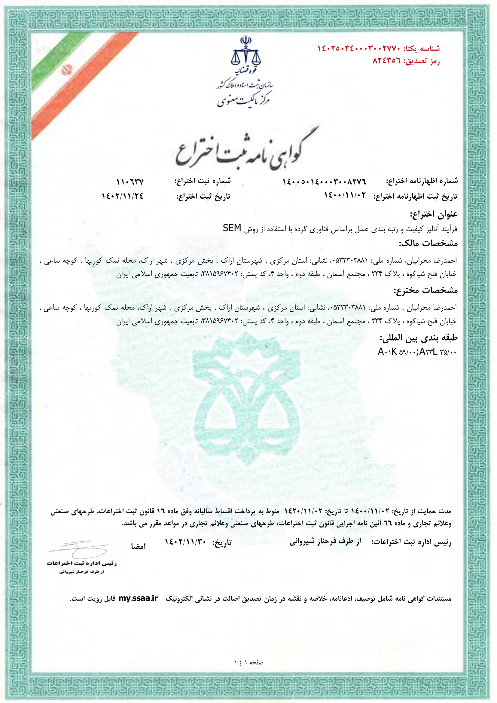 ثبت اختراع فرآیند خالص سازی گرده گل