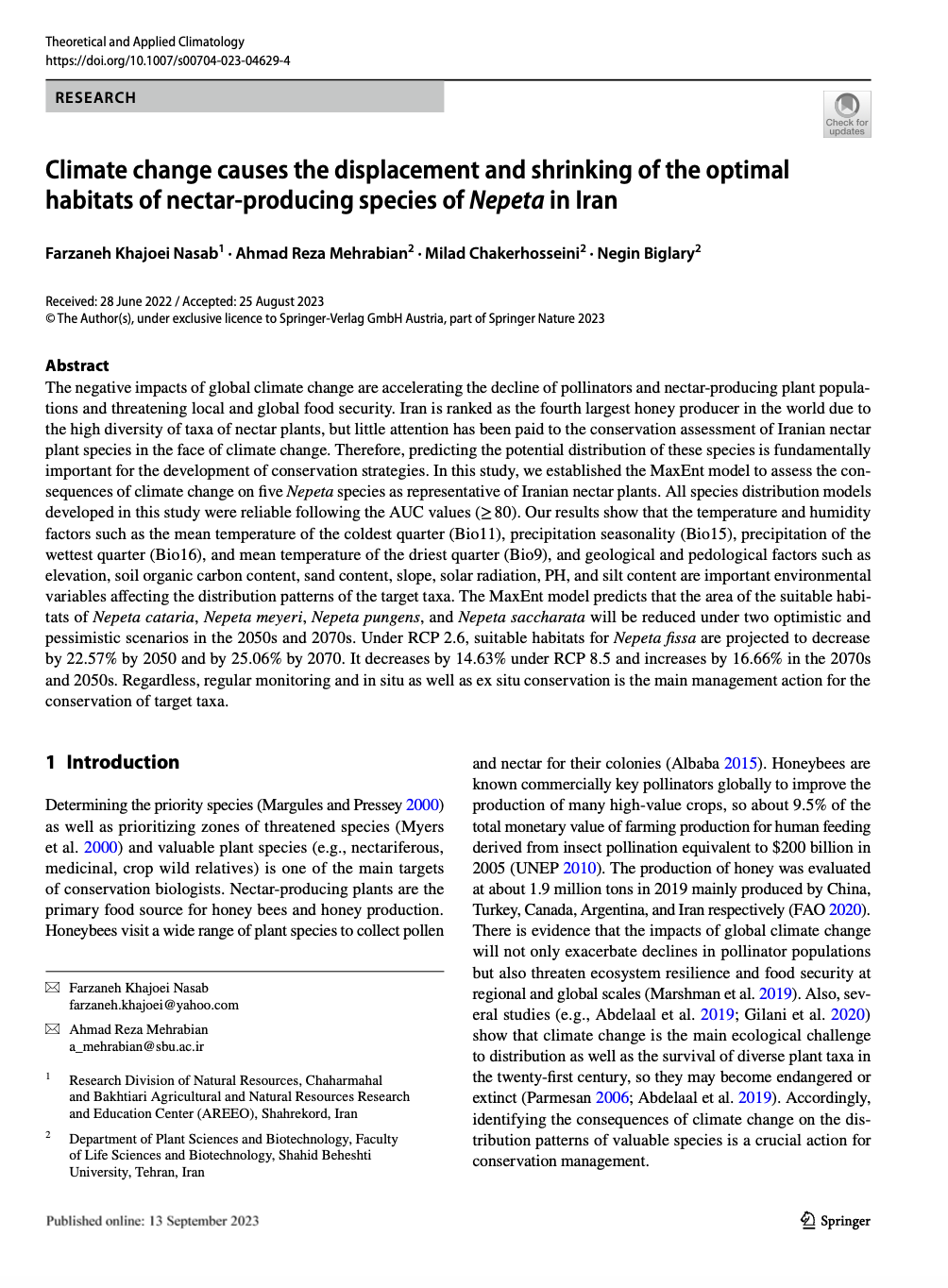 پیش بینی تاثیر اقلیم بر پراکنش گیاهان شهدزا و گرده زای Teucrium polium L.