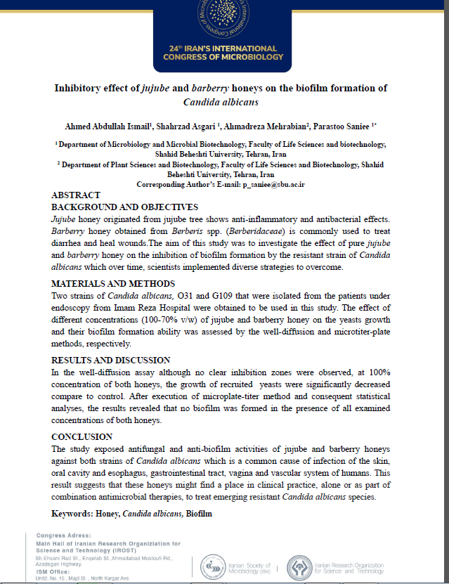 nhibitory effect of jujnbe and barberry honeys on the biofilm formation of Candida albicans