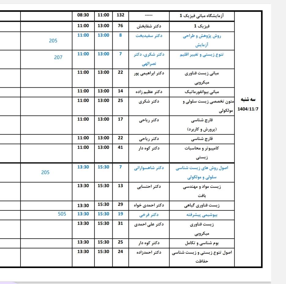 برنامه امتحانات مقطع کارشناسی روز سه شنبه7 بهمن ماه