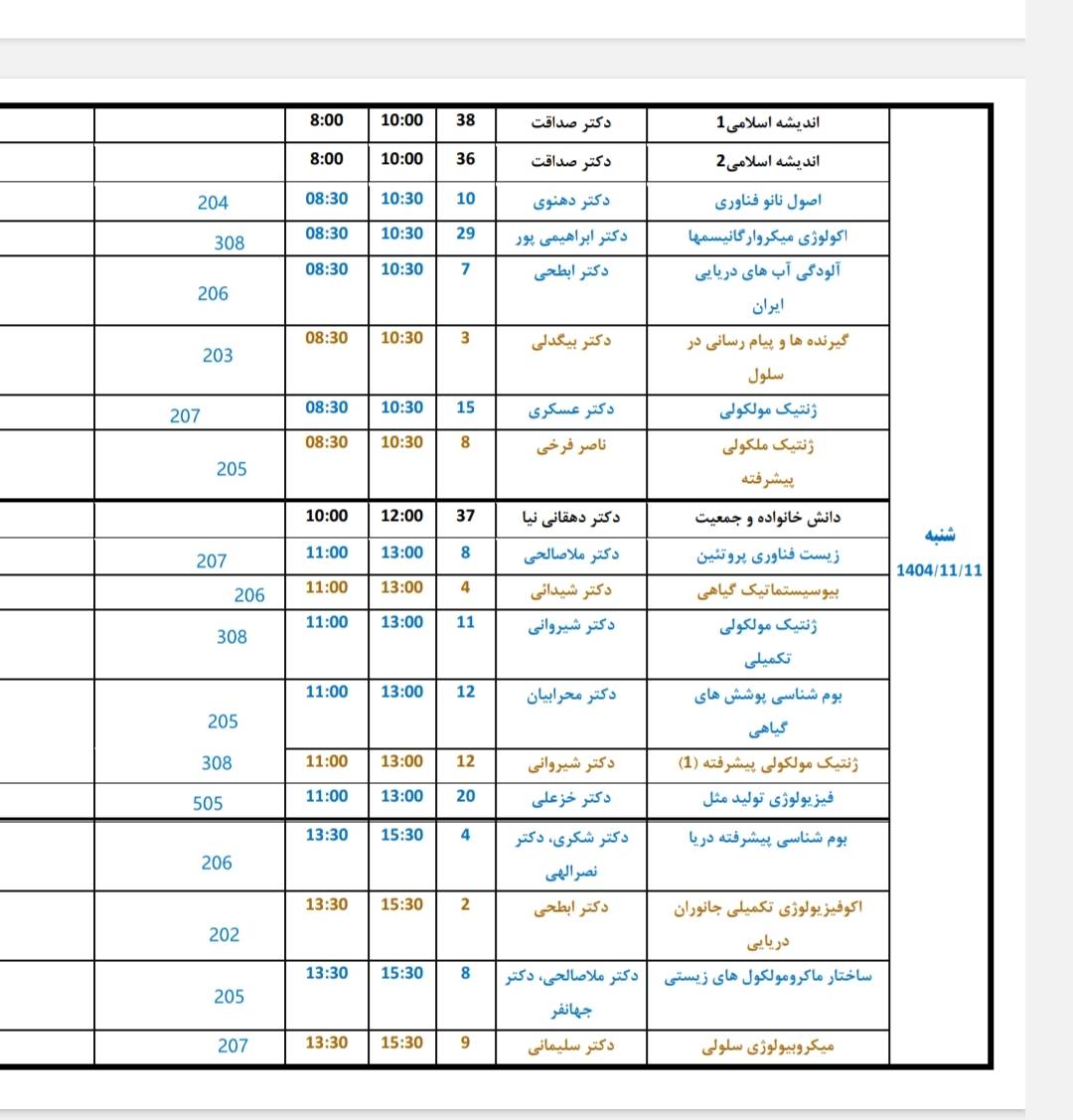 برنامه امتحانات مقطع کارشناسی روز شنبه 11 بهمن ماه