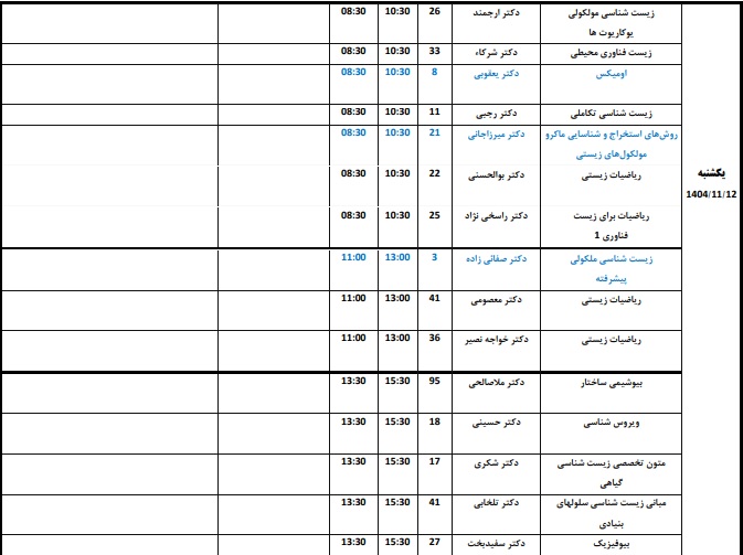برنامه امتحانات مقطع کارشناسی روز یکشنبه 12 بهمن ماه
