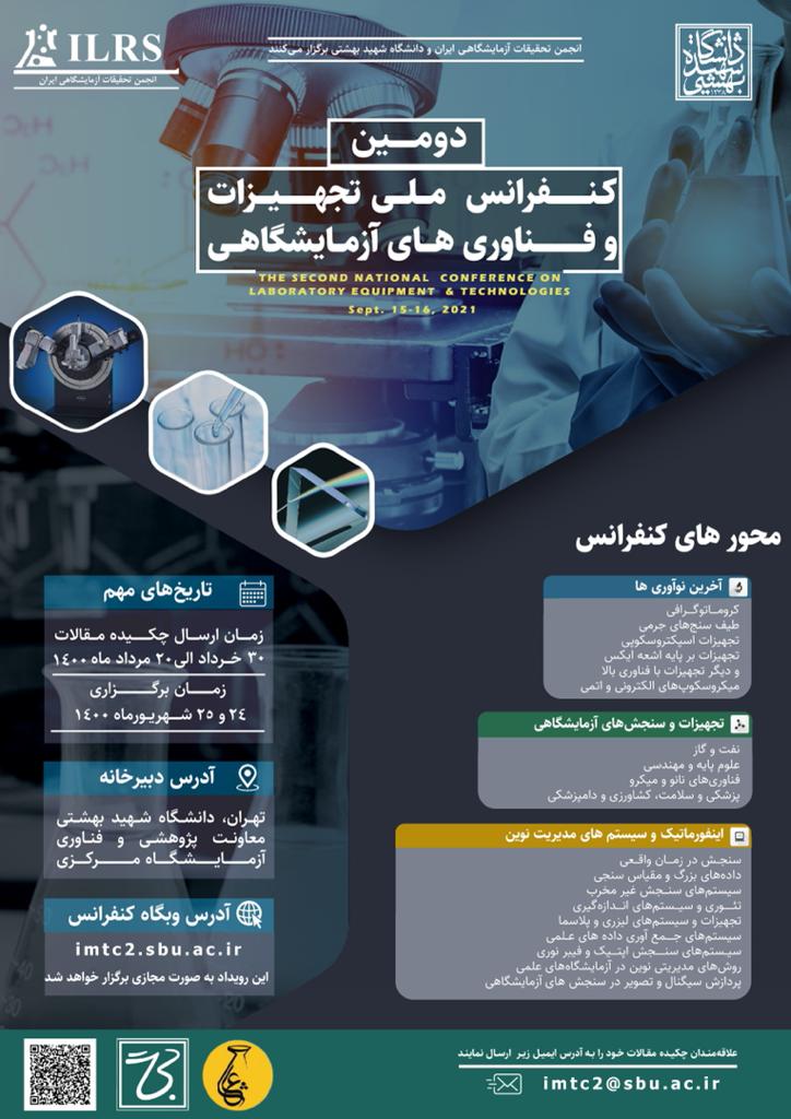 دومین کنفرانس ملی تجهیزات و فناوریهای آزمایشگاهی به همراه نشست سالانه شبکه آزمایشگاههای علمی ایران (شاعا) در آزمایشگاه مرکزی دانشگاه و به صورت مجازی در تاریح های ۲۵ و ۲۶ شهریور ماه ۱۴۰۰ برگزار میگردد.